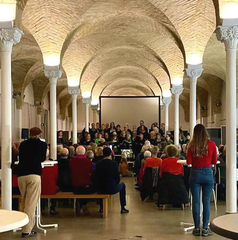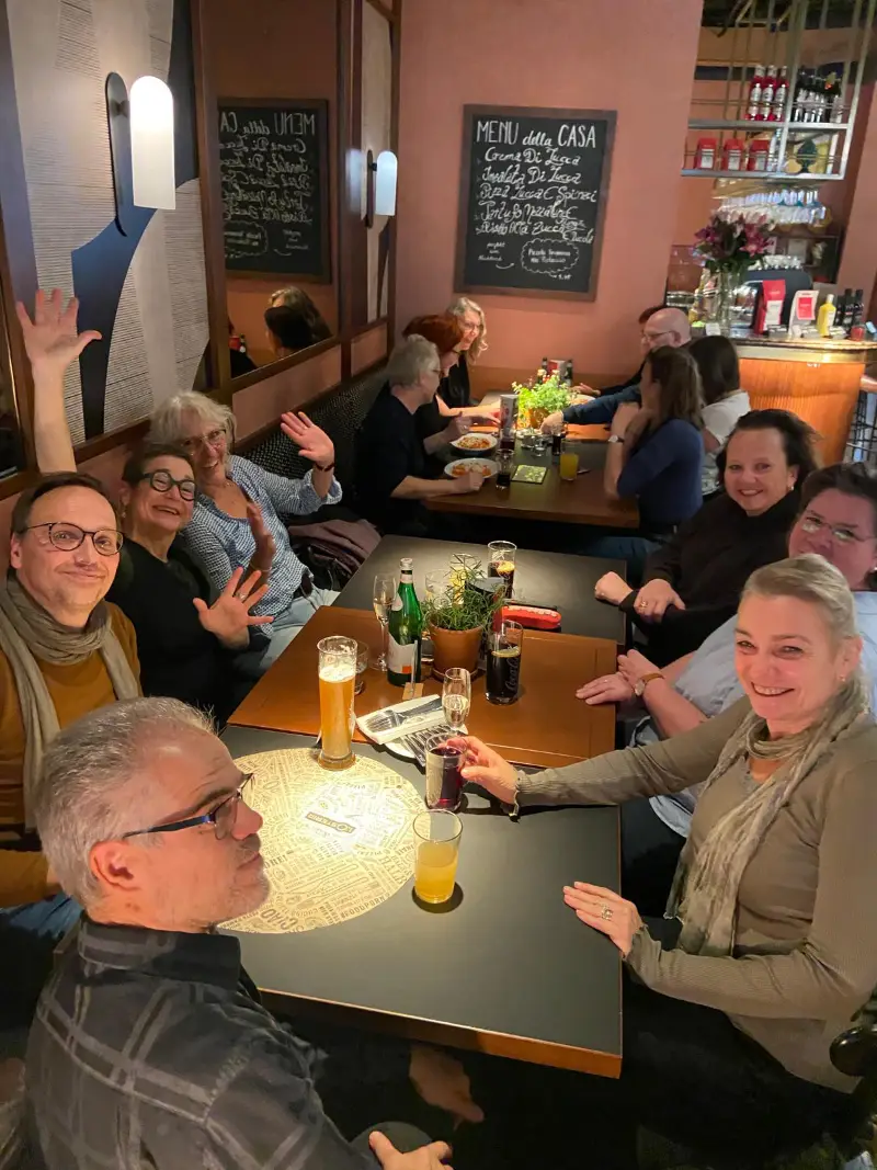 Innerhalb unserer Chorreise nach Berlin trafen wir Ende Oktober mit dem Chor Sanguena zusammen, der a-capella afrikanische Lieder darbietet. Es wurde ein lebendiger, sehr stimmungsvoller Mix zusammen mit unseren Lieblingsliedern und poppigen Hits. Sogar junge Leute unter dem Publikum waren von der Stimmung angesteckt und sind begeistert gewesen. Danach starteten wir ein Wochenende mit gemeinsamen Feiern und individuellen Entdeckungen in Berlin.